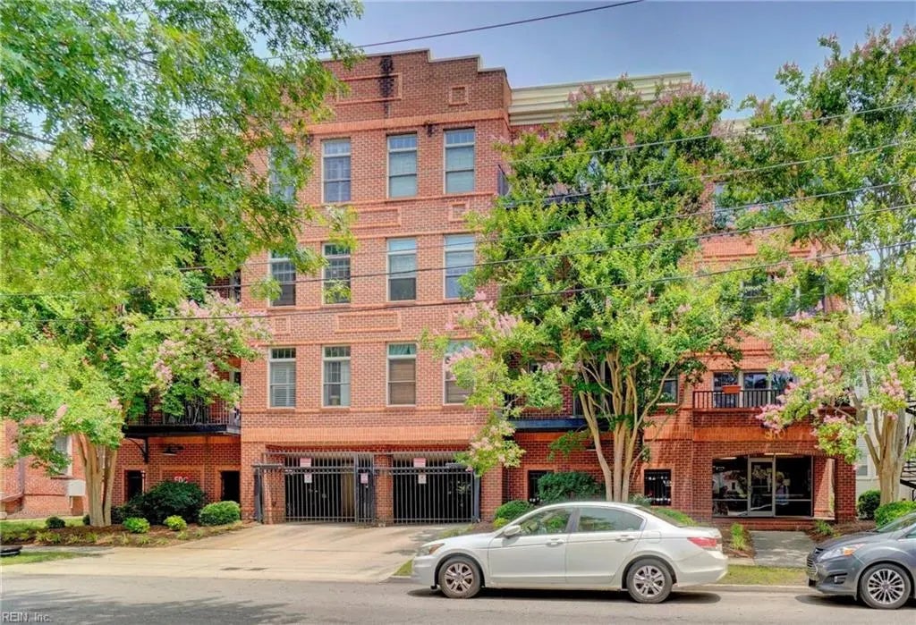 This is your opportunity to live in a modern building in Ghent with parking! This fantastic top-floor condo has high ceilings and wonderful open living space. Custom built-in bookshelves and cabinets are a unique feature and offer amazing storage options. The spacious openness allows lovely natural light to brighten the living area from the glass doors leading to the balcony with a tree-top view. The kitchen has a brand-new KitchenAid stove and granite counters. The primary bedroom includes a large walk-in closet and private, attached bathroom with a double-sink granite vanity and ceramic tile shower. The second bedroom also has a walk-in closet and a large, attached bathroom with granite vanity. Rare, gated parking includes a reserved spot and convenient access to the lobby and elevator. Ideally located just one block from the dining and shopping on Colley Ave, this upscale condo is also close to EVMS, ODU, and the Naval base! New HVAC, too! Some pictures are virtually staged.