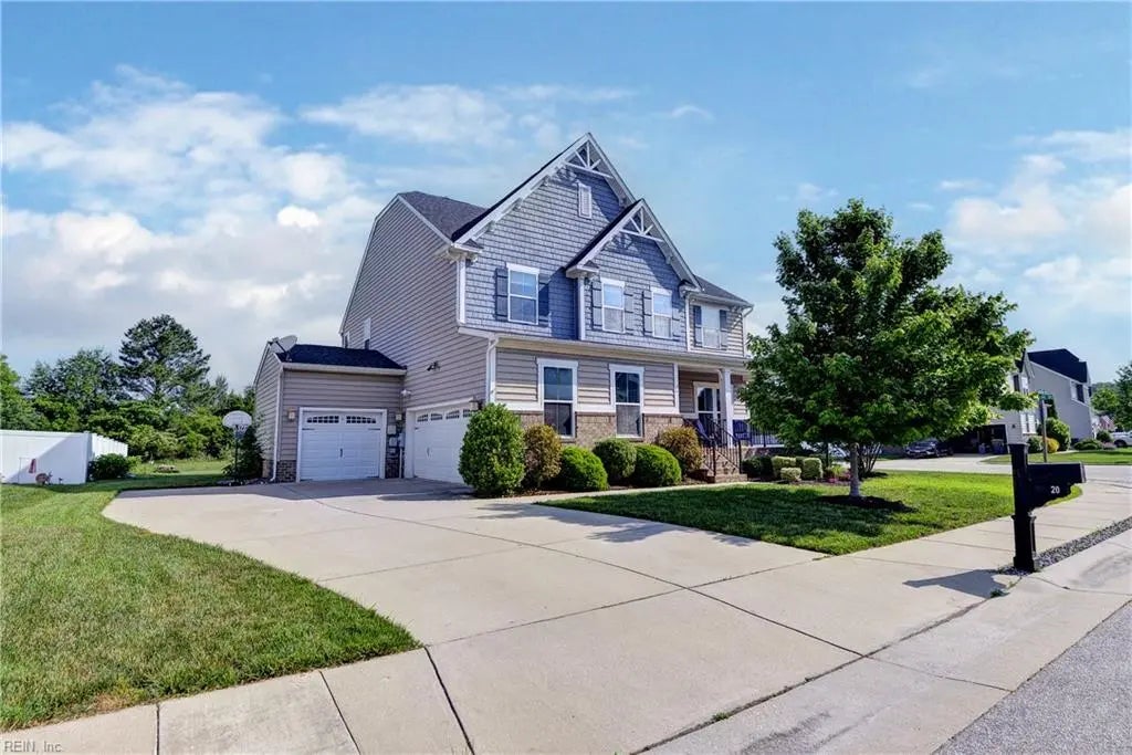 Motivated Seller! Spacious Craftsman style home located in the heart of Poquoson on a cul-de-sac street with sidewalks, community pond & playground. No flood ins required! Featuring a 3-car attached garage with courtyard expanded driveway, front porch, deck, and plenty of off-street parking. On the first floor is a Large Fam rm open to the kit w/breakfast bar & morning rm w/vaulted ceiling. Tucked away & off of the Family rm is a flex rm/ofc. There is also a dining rm, living rm & a half bath, all with 9ft ceilings. Second floor boasts a very large primary bedroom w/2 walk-in closets, bathroom w/double sinks, & a shower w/glass doors. Large loft/sitting area is surrounded by 3 more bedrooms (1 w/ensuite), a hall bathroom, and laundry room. Conveniently located to LAFB, NASA, shopping, restaurants, and all public amenities.