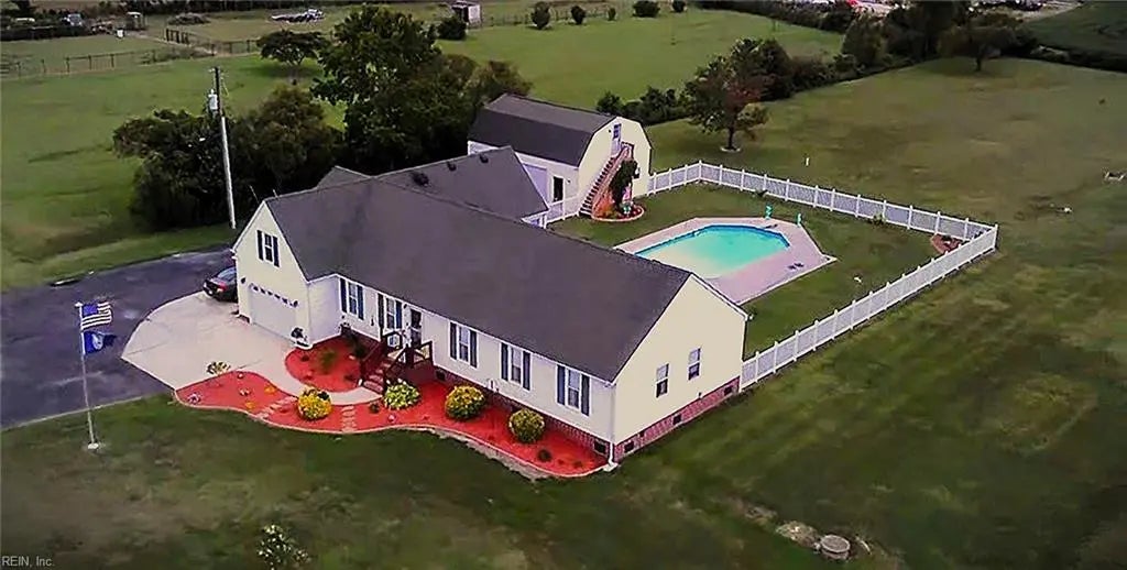Nestled in sought-after, peaceful Hickory neighborhood. 5-bedroom, 3-bath ranch has dedicated Mother-In-Law Suite, Sits on 3.24 private acres. Long paved driveway loop leads to a 1-car attached garage & a 2-car detached garage with workshop. Detached garage comes with 200-amp electrical service & a 320 SF partially FROG. Great for a DIY enthusiast or man cave. Enjoy ultimate privacy with an in-ground pool & newly built deck w/gazebo. Pride of ownership shines thru out property. Spacious walk-in closets with thoughtful storage. PBR suite features 2 W/I closets, separate shower & Jacuzzi tub overlooks a serene backyard. Bonus features include encapsulated crawlspace, ceiling fans thru out, 1-y/o water heater, 2-y/o HVAC, 4-5-/o roof, & a 2-y/o well pump & water softener system. John Deere Compact Utility tractor w/implements negotiable outside of contract. 3 Mounted TVs in bedrooms convey. It's only minutes to Northwest River Park. Packed with features. Must See to fully appreciate!