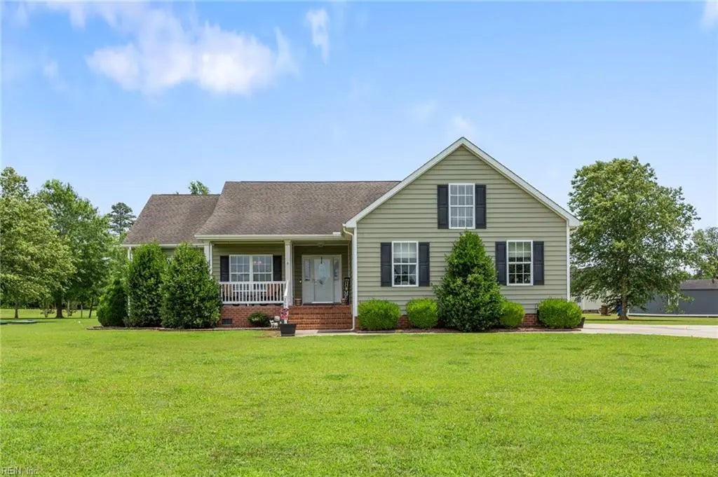 Spacious 3-bedroom, 2.5-bath ranch with a large FROG that could serve as a 4th bedroom or bonus space. Set on a peaceful 1-acre lot, this home offers the perfect blend of country living with quick access to town and Rt. 58 (and a quick commute to all of Hampton Roads!) The open layout features cathedral ceilings in the kitchen and den— open for entertaining. Enjoy the roomy laundry area with large cabinets and a back deck overlooking the expansive yard. Zoned for Southwestern Elementary, Forest Glen Middle, and Lakeland High. A comfortable, versatile home in a great location!