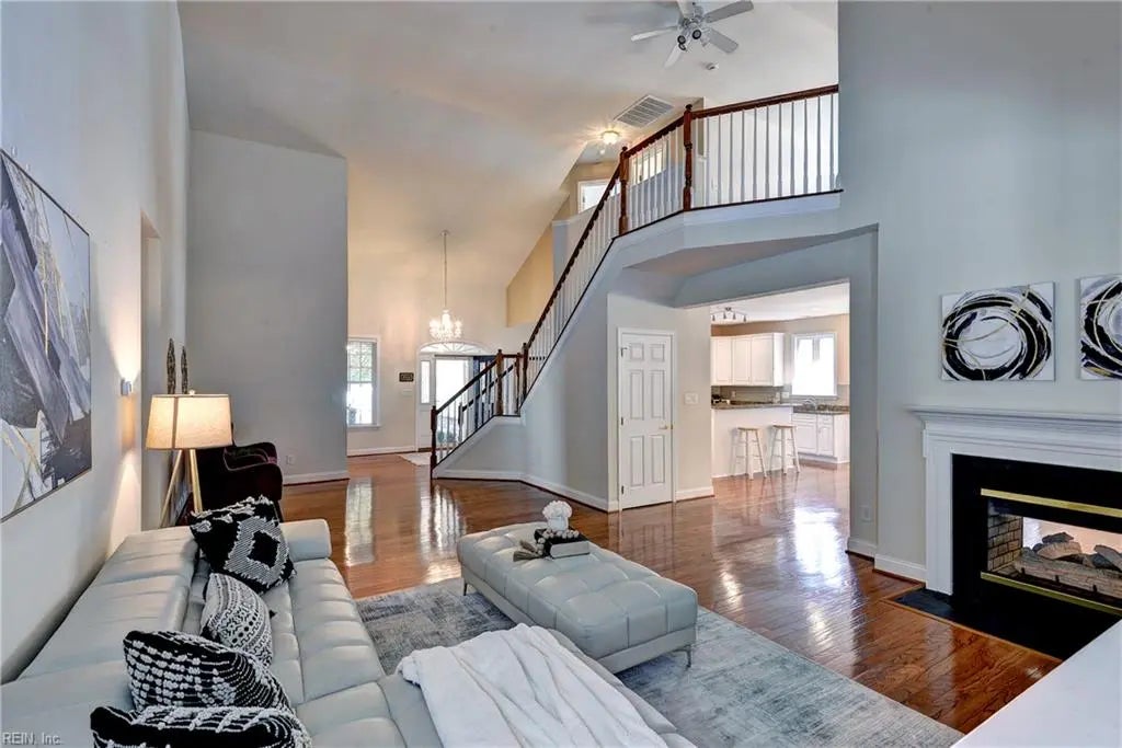 Beautifully appointed "Lakemont II" in the sought-after Colonial Heritage 55+ community, offering 2,866 square feet of thoughtfully designed living space, exceptional curb appeal, and a welcoming covered front porch. Inside, discover the perfect blend of timeless elegance and modern open-concept living. The upscale kitchen features stainless steel appliances, a large center island, and a bright eat-in area that flows into the spacious family room with a cozy double-sided fireplace. The main level boasts a luxurious primary suite with dual walk-in closets and a spa-like ensuite bath, a guest bedroom with a full bath, and a flexible office or bonus room. Upstairs includes an additional bedroom, full bath, and an open loft—ideal for a second living area or retreat. Enjoy a lifestyle of comfort and ease in this meticulously maintained home, all within the vibrant, amenity-rich Colonial Heritage community.