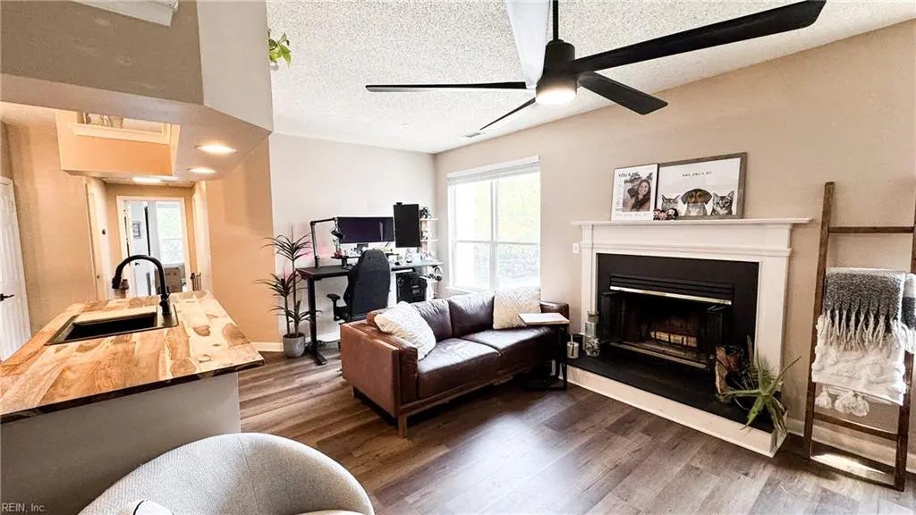 Beautifully updated 2-bed, 2-bath corner-unit condo in the desirable Shorehaven community. This second-floor home features a renovated kitchen with stainless steel appliances, butcherblock countertops, and modern finishes. Both bathrooms have been renovated with additional built-in storage. Updated lighting, ceiling fans, and a cozy fireplace create an open and inviting living space. Includes Samsung high-efficiency stackable washer and dryer. HVAC replaced in 2020 and Water heater replaced in 2022. Enjoy trails that start at the front of the community, plus a park and basketball court just a few minutes away. Chesapeake Bay beach access across the street, right on Jade Street. Assigned parking and low HOA that includes water, trash, pool, and grounds maintenance. Conveniently located near Shore Drive, First Landing State Park, and local dining. Move-in ready and perfectly situated to enjoy the best of beach living.