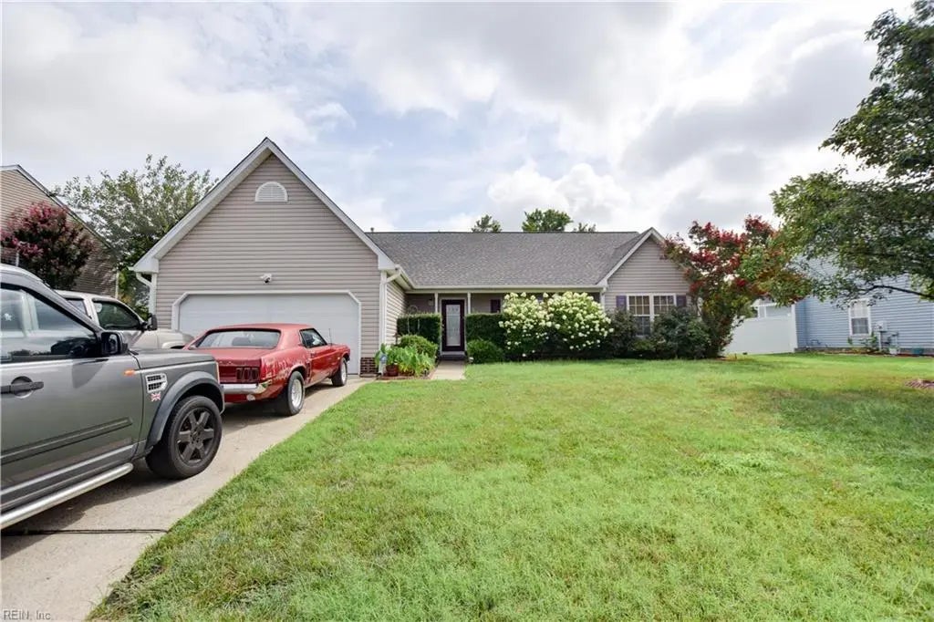 This beautifully maintained ranch sits on a quiet cul-de-sac in lovely Applewood Farms. It features a large living room with vaulted ceilings, a spacious kitchen, and a big deck overlooking the backyard. The master features a huge walk-in closet and sits on the opposite side of the house from the other two bedrooms. Applewood Farms is just minutes from downtown Suffolk, and has easy access to highways, shopping, and all bases. Plus...it has a brand new roof!