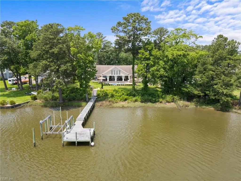 16,000lb boat lift with 5 feet at low tide, 1000sqft in-law suite, oversized climate controlled 3 car garage, salt water pool with custom natural stone deck, expansive first floor primary with water views, walk-in shower and separate steam room. Discover luxury living in this gorgeous 4-bedroom coastal home, perfectly positioned on the Elizabeth River in the highly sought-after Western Branch community. Built in 2013, this residence showcases impeccable craftsmanship and upscale finishes throughout. Gourmet kitchen with solid cherry cabinetry, granite countertops, and a dramatic 13-foot granite island bar. Premium Miele stainless steel appliances: steamer, warming drawer, oven, microwave, dishwasher, and gas range. Open-concept layout with spacious living areas and abundant natural light. This exceptional home blends coastal charm with modern elegance, offering a peaceful waterfront lifestyle while remaining centrally located.