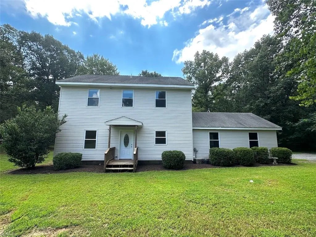 Discover your new home in Isle of Wight County, Virginia, where this charming 3-bedroom, 2.5-bathroom residence spans 1,792sqft on a sprawling 14.961-acre lot. Great for those craving serene country living, it’s just 25 minutes from Wakefield, Smithfield, and the greater Hampton Roads area. The open-concept first floor features an open kitchen with a pantry, full appliances, and a breakfast area leading into the living room. A bonus room and half bath add flexibility multiple uses. Upstairs, the 16x16 primary bedroom offers an ensuite with dual vanities, a jetted tub, and a tiled shower. Two additional bedrooms (12x12 and 12x10) and a full bathroom provide ample space. A 437sqft attached garage adds convenience. Outside, a serene pond and towering oaks create a picturesque front yard, while the vast acreage is greatl for a farmette, gardening, or hunting. Storage includes a 9x16 metal shed, a 20.5x18 carport, and a 23x13 workshop with a wood-burning stove, porch, and covered storage.