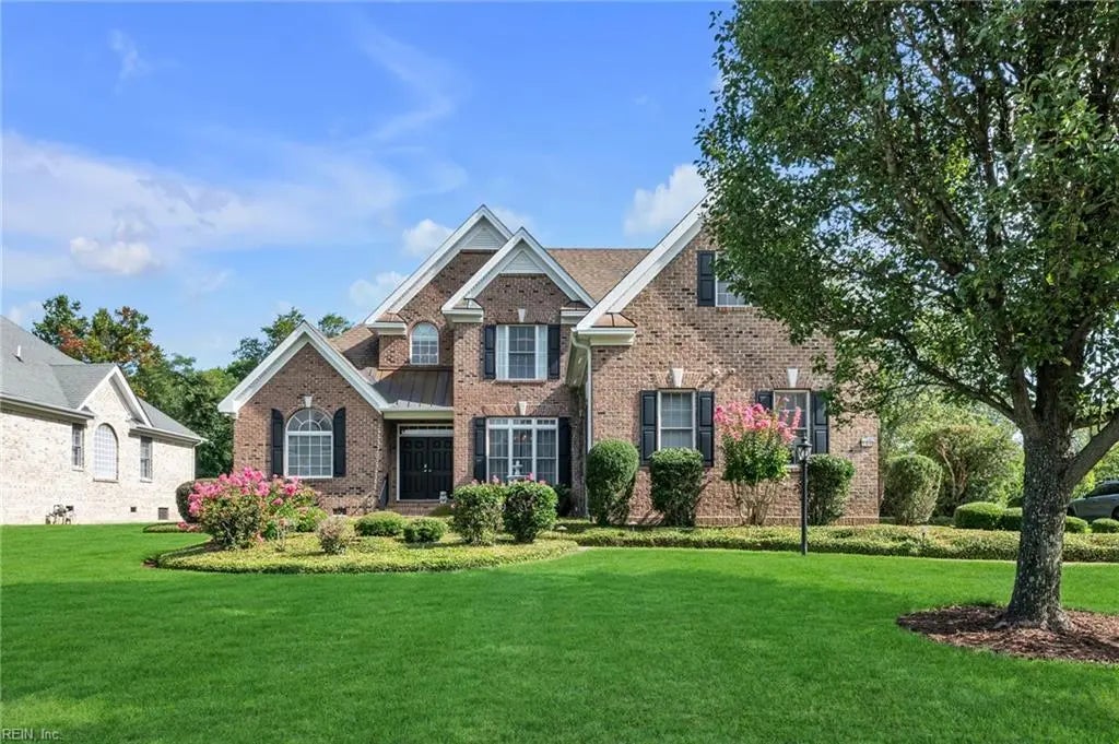 Welcome home! This spectacular 4BR/2.5BA all-brick home is packed with upgrades and luxury throughout. Enjoy a 3-car garage, vaulted ceilings, hardwood floors, custom molding, surround sound, and a spacious main-level primary suite. The gourmet kitchen features granite counters, Jenn-Air stainless appliances, double ovens, gas range, center island, and wine rack. The primary suite offers two walk-in closets, jetted tub, dual walk-in tile shower, and private patio access. A media room with drop-down screen (equipment conveys), built-in bookcases, and walk-in storage add flexibility. Outdoor living includes a screened porch, oversized stamped concrete patio, full irrigation with well, and lawn lighting. Home automation, soundproofing, and upscale finishes complete this entertainer’s dream!
