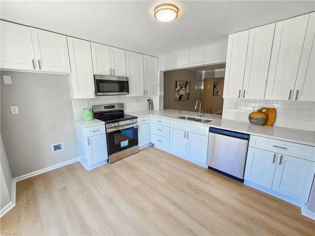 Nestled in the sought-after Great Neck area, this beautifully updated town-home offers 3 spacious bedrooms and 2.5 bathrooms. The main level boasts an inviting wood-burning fireplace, open-concept living and dining areas, and a bright eat-in kitchen with abundant cabinet and counter space. The brand-new eat-in kitchen showcases soft-close shaker cabinets, quartz counter-tops, stainless steel appliances, and a custom tile back-splash. Upstairs, the primary suite includes a private en-suite bath. Fresh paint throughout, new plush carpet, and luxury vinyl plank flooring add a modern touch. Major upgrades include a new roof. Located minutes from top-rated schools, child care, health care, shopping centers, restaurants, concert venues, military bases, and I-264. Plus, you're just a short drive to the beautiful Oceanfront Beach. Don’t miss this move-in ready gem in one of the most convenient and desirable neighborhoods!