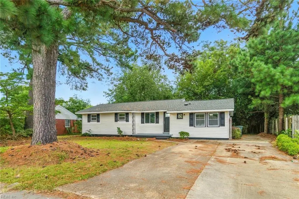 Wonderfully Renovated 4-Bedroom, 2-Bath Ranch Situated on a Deep Massive Lot Along Nosehs Creek!! This home offers coziness and comfort as you step into an open Family Room that leads to a Kitchen featuring QUARTZ COUNTERTOPS, White SHAKER CABINETS, Soft-Close Drawers, BRAND NEW STAINLESS STEEL APPLIANCES, and Recessed Lighting. The Large Primary Bedroom situated in its' own wing and hosts a stylish en-suite bathroom. Floors are equipped with Luxury Vinyl Plank and Plush Carpeting. Elegantly designed and finished bathrooms gleam with Tile Surround Tub and Shower. Newer Roof and HVAC, Brand New Windows, New Gutters, New Back Deck, Wide Driveway & EV Charging Port. Huge Private backyard space. Conveniently located close to shopping, dining, the interstate, and the Light Rail. Great opportunity to own a fully updated home in the quiet East Norfolk Neighborhood of River Forest Shores.