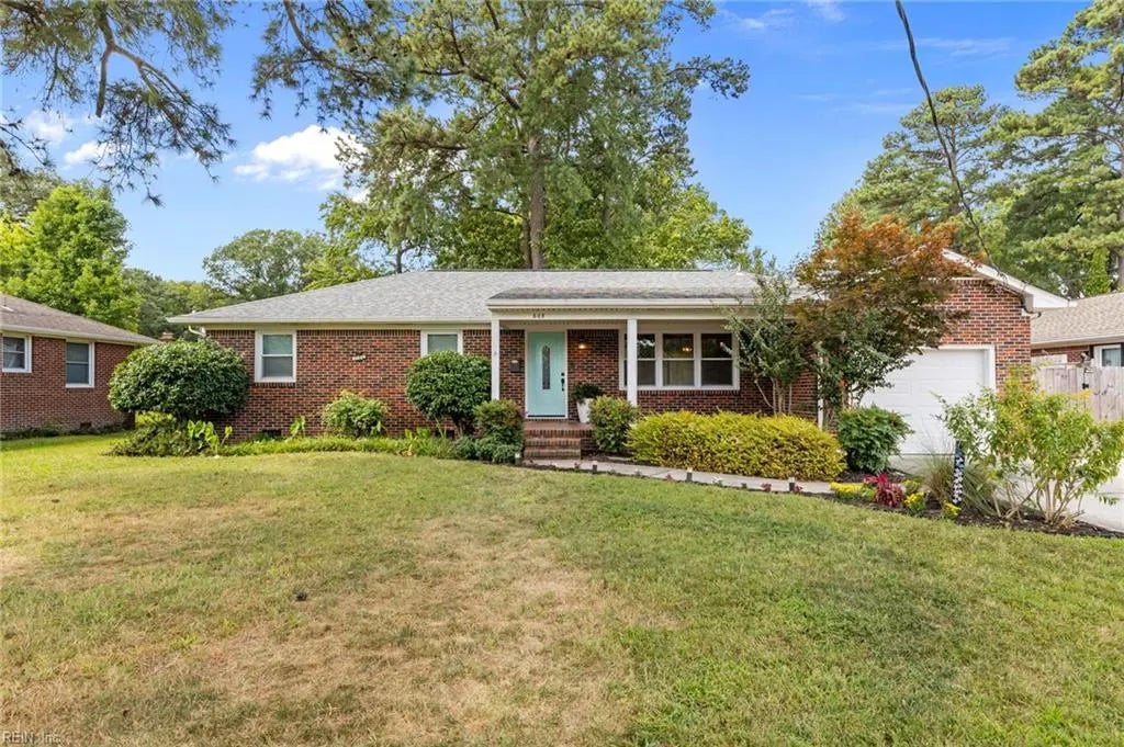 Welcome home to Elizabeth River Shores! This beautifully updated brick ranch blends charm and comfort with easy, one-level living. Spend mornings on the large front porch with coffee in hand, then step inside to a bright, open layout where living, dining, and kitchen spaces flow together seamlessly. The kitchen’s light cabinetry and warm butcher block counters create the perfect backdrop for gathering with friends and family. With 3 bedrooms and 2 baths, there’s room for everyone, plus a garage for storage and convenience. New laminate floors run throughout, and recent updates—including a newer roof, water heater, and attic insulation—offer peace of mind. Out back, the fully fenced yard is a private retreat for entertaining, gardening, or simply unwinding. And with no HOA, you can truly make this home your own!