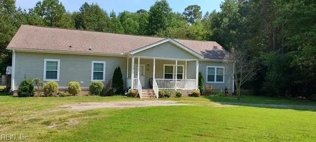 Well maintained ranch set back off the road. Centrally located and accessible to all of IOW County. Located on 7.5 acres-cleared home site with the remainder wooded. Gravel front circle driveway. Split floor plan with Primary bed/bath on one side-2 additional beds & bath on the other. Eat in kitchen with a nook off from it that could be an office or whatever you decide to make it. Screened back porch off of kitchen through French doors-Front porch already has a swing that is just waiting for you to come make it your own!