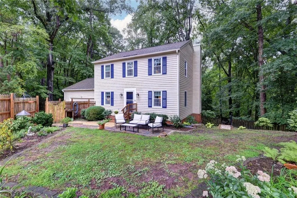 Find rare peace and privacy on over a ½ acre at this lovely four bedroom transitional home nestled in the woods of Kristiansand. Over $30,000 of recent updates! The fully fenced front yard creates an oasis upon entry with a darling front patio and garden. A first floor bedroom greets you off the main entrance to the left, a serene front living room to the right. A cozy brick, wood burning fireplace accentuates the amazing, updated kitchen with quartz countertops, new cabinetry, updated stainless steel appliances and phenomenal storage and counter space. Freshly refinished hardwoods throughout the main level. Upstairs the massive primary suite features an updated primary bath and dual closets. Two additional well sized rooms share another full bath. An awesome garage workshop for any crafting needs can be converted back to a second garage bay. Custom terraced stairs and the refreshed back deck both lead to an incredible, private back yard.