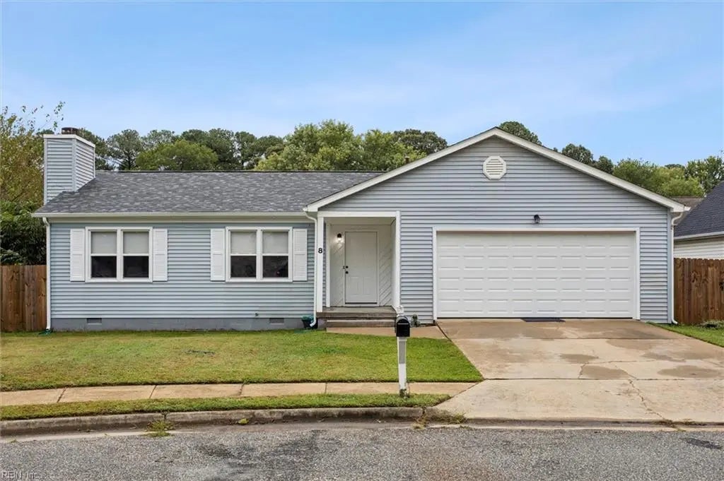 Come see this beautiful 3-bed 2-bath rancher in Hampton. Walk up the front porch steps and enter to see the spacious foyer, wood floors and living room boasting vaulted ceilings and a beautiful wood burning fireplace. Make your way through the dining room to the updated kitchen featuring granite counters, a touchless faucet, stainless steel appliances, and abundant storage. Down the hall you will find generously sized bedrooms and updated bathrooms. The primary suite features an accent wall, a 60-inch LED lighted double vanity with anti-fog mirror, and two closets. Step out onto the back deck to see the fenced in backyard great for hosting a cookout, enjoying outdoor activities, or even planting a garden! Parking won't be an issue with the attached 2 car garage and plenty of driveway space. Roof, HVAC systems, water heater, and kitchen appliances are less than 3 years old. Convenient beaches, interstates, and everything downtown Hampton has to offer. Schedule your showing today!