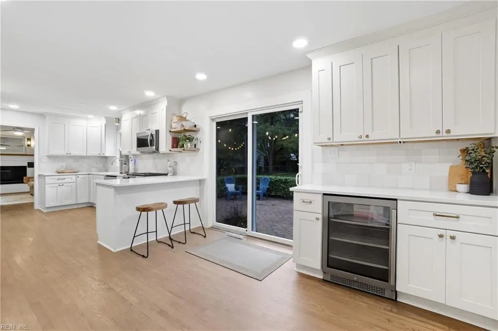 Move-in ready awaits! Tastefully updated and well-maintained, the property blends style and functionality making this a forever home. The large front porch greets you at the door. Once inside, you'll immediately notice the fine flooring finishes of ceramic tile in a harringbone pattern and refinished hardwood. An open floor plan adds ease and options for you when deciding where to settle in. Pull a stool up to Cambria countertops in the recently renovated kitchen or get cozy next to the fireplace with a glass of something from the wine cooler. Consistent with the rest of the house, the bathrooms have all had remodeling, making for a spa-like experience. The fenced-in, expansive backyard is perfect for a bbq with a brick patio and firepit area, a grassy lawn, as well as, a shed for extra storage. King's Grant is where the community is active, the elementary school is number one, there are parks with nature trails, stocked fishing ponds, and a swim and racquet club. You'll love it here!