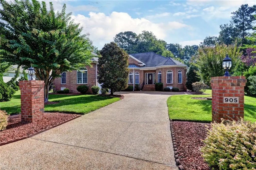 Brick front rancher in the desirable Lakes at Dare neighborhood. Pride of ownership shows throughout! Inside, the foyer opens to a formal living room and a spacious family room with cathedral ceiling, gas fireplace, and built-ins open to the formal dining room, updated eat-in kitchen with quartz counters, bar, stainless appliances, tile backsplash, pantry, and sunny breakfast nook. Off the kitchen is the large sunroom with walls of windows. Split floorplan with primary suite featuring 2 walk-in closets, jetted tub, walk-in shower, & dual vanities on one side of the house & 2 bedrooms on the opposite that share a Jack-n-Jill bath. Upstairs offers 4th bedroom with full bath, murphy bed, walk-in closet, and floored attic access. Outdoor living includes screened porch, composite deck, patio with hot tub and awning, plus additional hardscape patio for entertaining in the large backyard. Side-load garage, beautiful wood floors, inground sprinkler, manicured landscaping, & much more!