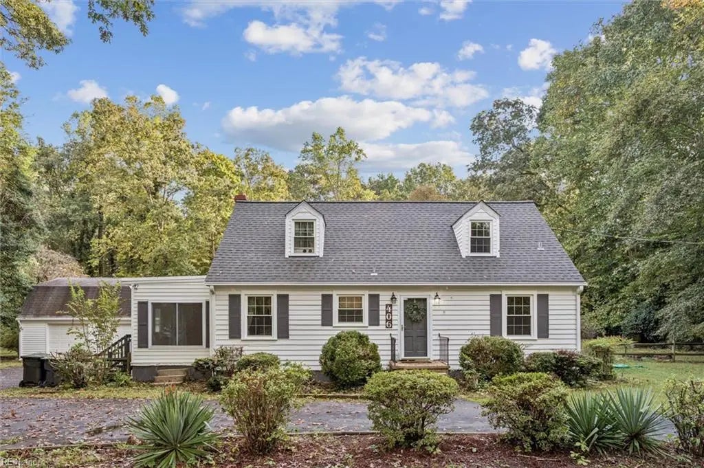 Welcome to this charming Cape Cod style home, perfectly situated on just over an acre of land. This inviting property offers 3 spacious rooms plus a versatile bonus room, providing plenty of space for a home office, playroom, or guest area. Beautiful wood floors flow throughout, adding warmth and timeless character. Freshly updated paint enhances the bright, airy feel, making this home truly move in ready. The oversized two car garage is a standout feature, complete with a loft that provides excellent storage or the potential for a workshop or hobby space. Conveniently located near I-64, military bases, Bruton High School, Colonial Williamsburg, William & Mary, Williamsburg Outlets, this home combines peaceful living with easy access to dining, shopping, and entertainment.