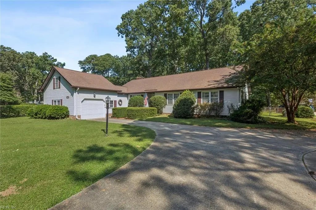 Welcome to this spacious ranch in the highly desirable Warwick on the James neighborhood. Set back on a beautiful half acre lot with a fully fenced backyard. Refinished hardwood floors throughout and a gracious floor plan with a large living room featuring a bay window overlooking the backyard, a formal dining room, a den with a gas fireplace, built-in shelving, and doors leading out to the patio. The expansive kitchen offers an eat-in area, pantry, and easy access to the laundry room. With four generous bedrooms, including an owner’s suite and a finished room over the garage, there’s space for everyone. HVAC replaced in 2014. This home blends comfort and potential in one of the area’s most sought-after locations. Ready for you to make it your own.