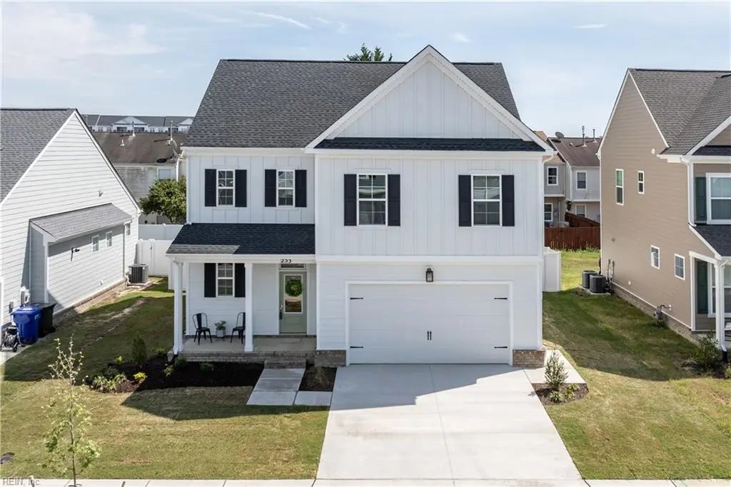 Quick Close! $25,000 Closing cost assistance available with use of builder lender partner. Open-concept layout. Modern stainless steel appliances. Spacious kitchen island serves as a hub for entertaining and cooking, accented by stylish quartz counters. Sunroom off the living area is perfect for soaking up sunlight, reading, or unwinding. Primary suite features tray ceiling and upscale bath with tiled shower and separate soaking tub. 9-ft ceilings on both floors. Each bedroom includes a walk-in closet. White vinyl privacy fence installed. Community offers playground, dog park and green spaces. Close to new Publix and Obici Hospital.
