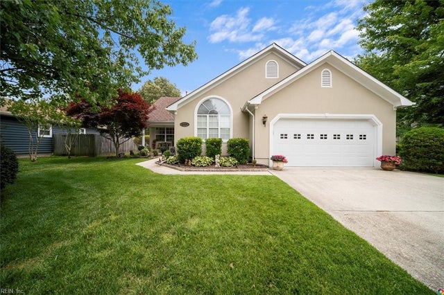 SOLD FULL PRICE | Perfect home if you are single, have a young family or if you are looking to downsize to one-level living. Excellent location for shopping, military base & beaches. Excellent schools. Open floor plan with trayed ceilings in LR, DR & Master Bedrm. Cathedral ceilings in front BDRM & Master Bath. Beautiful exotic tiger wood hardwd floors. Spacious, bright kitchen has white cabinets, butcher block counters with moveable island, SS Appliances, eat-in area opens to the sun room. 10x10 Office build-out is located in the garage. Luscious backyard w/ patio, deck & covered pergola for summer fun. Well maintained home with major systems replaced within last 5 years.